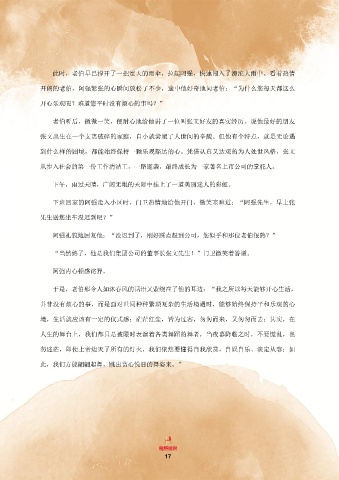 于是,老伯那令人如沐春風(fēng)的話語(yǔ)又縈繞在了他的耳邊:“我之所以每天能夠開(kāi)心生活,