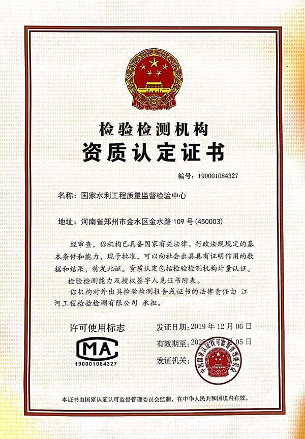 我國172項(xiàng)節(jié)水供水重大水利工程已開工建設(shè)130項(xiàng)余項(xiàng),水利建設(shè)快速發(fā)展的同時,如何維護(hù)水利工程的健康穩(wěn)定,保障建設(shè)質(zhì)量,成為亟待解決的問題。水利部提出了"水利工程補(bǔ)短板、水利行業(yè)強(qiáng)監(jiān)管"的新時期水利改革發(fā)展總基調(diào),公司積極響應(yīng)貫徹總基調(diào),高屋建瓴、胸懷行業(yè)大局,找準(zhǔn)定位、謀劃未來發(fā)展,擔(dān)當(dāng)社會責(zé)任,以前瞻性眼光進(jìn)行策劃,于2018年8月份向市場監(jiān)管總局提出了籌建國家級質(zhì)量監(jiān)督檢驗(yàn)中心的申請。在國家市場監(jiān)督管理總局的監(jiān)督指導(dǎo)下,在河南省人民政府和水利部、黃河水利委員會的關(guān)心支持下,歷時一年半的時間,經(jīng)過總局領(lǐng)導(dǎo)現(xiàn)場查勘、國家級專家論證會、國家級評審專家現(xiàn)場評審等環(huán)節(jié),終于在12月6日獲得國家水利工程質(zhì)量監(jiān)督檢驗(yàn)中心的授權(quán)證書和資質(zhì)認(rèn)定證書。